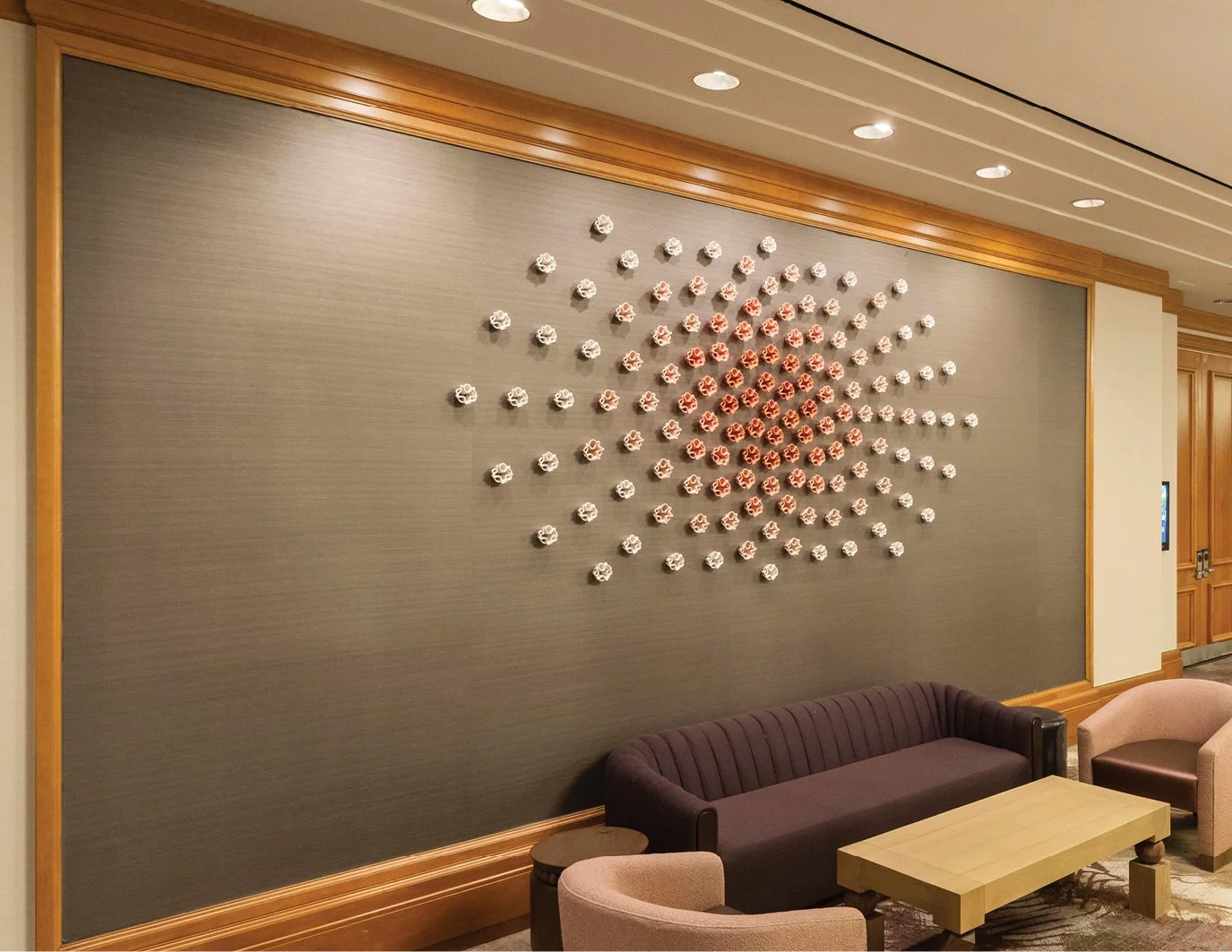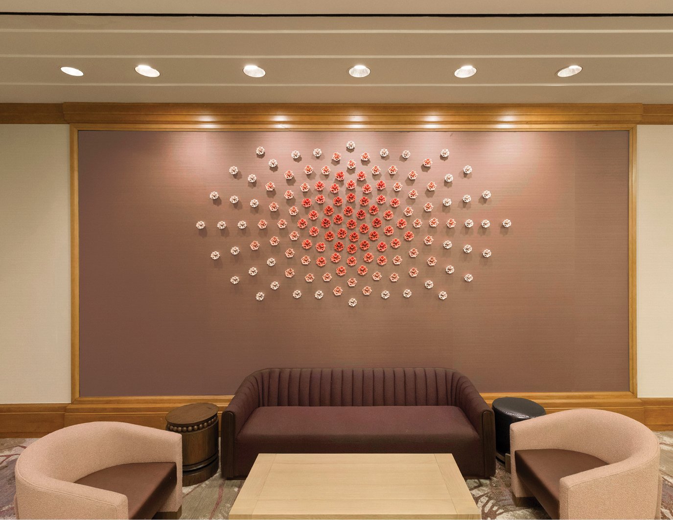 Bloom translates the organic rhythm of growth into digital geometry. Composed of 70 unique modules, the installation radiates from a saturated, earthen core into a light, airy perimeter. By varying both scale and color, the work captures the exact moment of a flower’s unfurling, blending the precision of 3D printing with the warmth of a hand-glazed gradient.